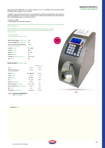 Analyse 11 composants différents dans le lait. Donne les résultats env. 60 min. Les informations comme fournisseur ou numéro