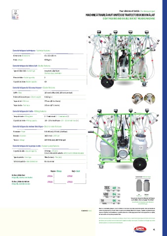 Capacité de traite • Milking capacity 100 - 120 animal/heure • 100 - 120 animal / hour (~)