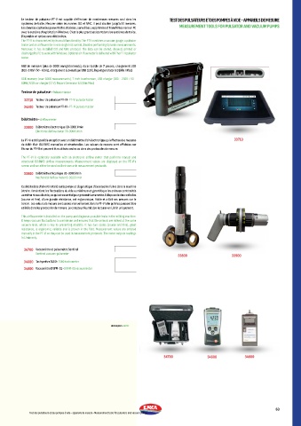 systèmes de traite. Mesurer selon les normes ISO et NMC. Il peut stocker jusqu’à 50 mesures. MEAsuREMENt tooLs FoR PuLsAtoR AND VACuuM PuMPs