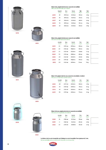 Stainless steel milk buckets are made from AISI 304 quality 1 mm stainless steel.