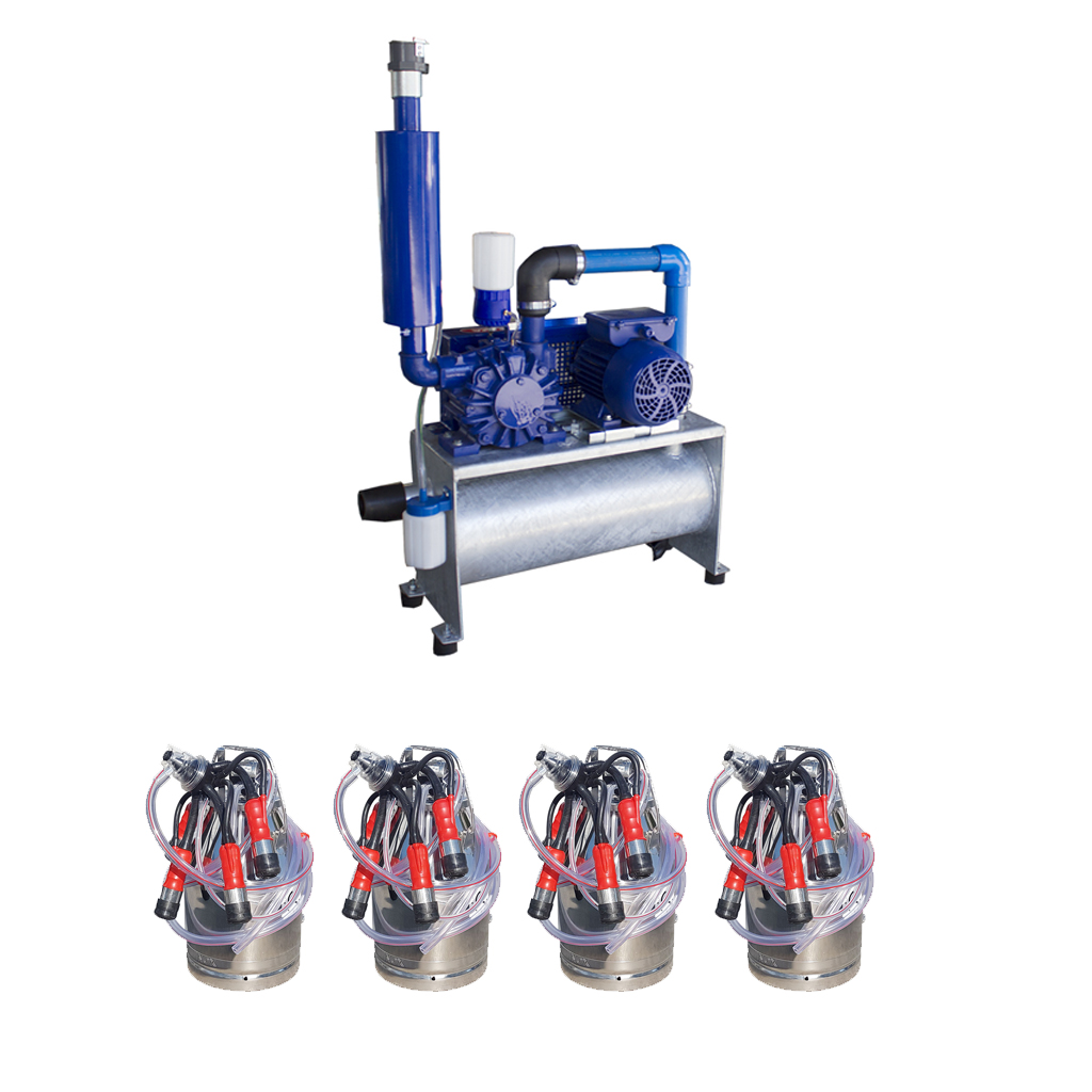 Vakum pompası monofaze elektrik motoru (220V 50 Hz – 230V 50 Hz) veya trifaze elektrik motoru (380V 50 Hz) ile çalışır. (Sipariş esnasında belirtilmelidir.) Kaliteli ve dayanıklı pulsatörler ile sağlıklı ve hızlı bir sağım gerçekleştirilir. Vakum kazanı galvaniz kaplıdır, sistemde uzun ömürlü yağlı tip bir pompa mevcuttur.